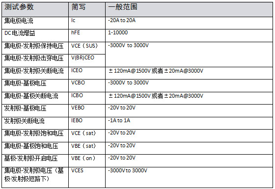 2.針對(duì)BJT的測(cè)試參數(shù):