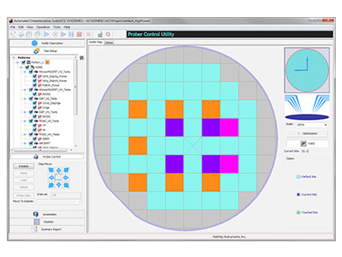 | ACS 支持各種半自動(dòng)和全自動(dòng)探頭在整個(gè)晶片上對(duì)半導(dǎo)體器件進(jìn)行測(cè)量;蛘,以交互方式控制探頭測(cè)試每個(gè)器件。在運(yùn)行時(shí)期間,通過(guò)單器件結(jié)果和多器件統(tǒng)計(jì)監(jiān)視測(cè)試進(jìn)度。 |