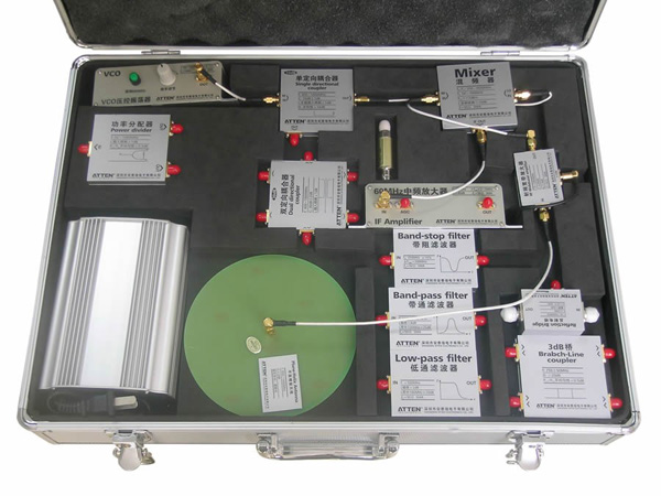 AT2000 RF射頻實驗訓(xùn)練模塊,是由平面螺旋天線、寬帶射頻放大器、混頻器、中頻放大器、射頻調(diào)制器、VCO壓控振蕩器、功率分配器、濾波器(包括高通、低通、帶通、帶阻)。固定衰減器、定向耦合器、函數(shù)發(fā)生器、開槽傳輸線、反射電橋、終端負(fù)載、短路器、電源等21個單元模塊組成,可方便地組合成射頻發(fā)射系統(tǒng)和射頻接收系統(tǒng),各單元模塊包含獨立的實驗電路,配合射頻實驗指導(dǎo)書,支持實驗?zāi)K構(gòu)成多種射頻實驗,使用戶更方便,更直觀獲取射頻系統(tǒng)的基本原理,工作方式和基本結(jié)構(gòu),適用于高等院校、科研單位的通信、雷達(dá)、導(dǎo)航、測控等專業(yè)實驗室使用。