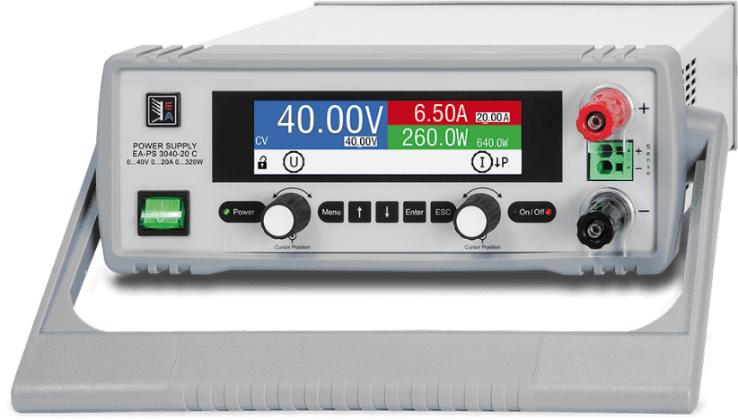 - EA Elektro-Automatik 自動量程臺式電源功率范圍為 300W 至 1500W。部分型號具有自動量程和內(nèi)置函數(shù)發(fā)生器等高級功能。自動量程功能可在電壓較低時自動調(diào)整為高電流,反之亦然,在各種電壓/電流水平下都能保持全輸出功率。函數(shù)發(fā)生器可提供正弦波、三角波、矩形波和梯形波等多種波形,還可輸出自定義的任意波形。EA Elektro-Automatik 自動量程臺式電源臺式電源均配有 TFT 觸摸屏,便于直觀的控制和測試設(shè)置。其界面簡單易用,可快速配置測試并直觀地操作儀器。EA 臺式和機柜式系列直流電源和負載結(jié)構(gòu)緊湊,節(jié)省空間又經(jīng)濟實惠,并且具有市場上大多數(shù)臺式設(shè)備所不具備的先進功能。