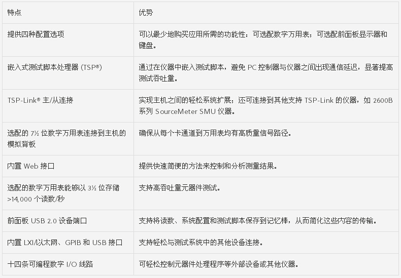 | 高達(dá) 576 | 集成式數(shù)字萬(wàn)用表,不帶前面板顯示器和鍵盤(pán) | GPIB /USB (TMC) / LAN (LXI) | 全機(jī)架,2U | 6 |