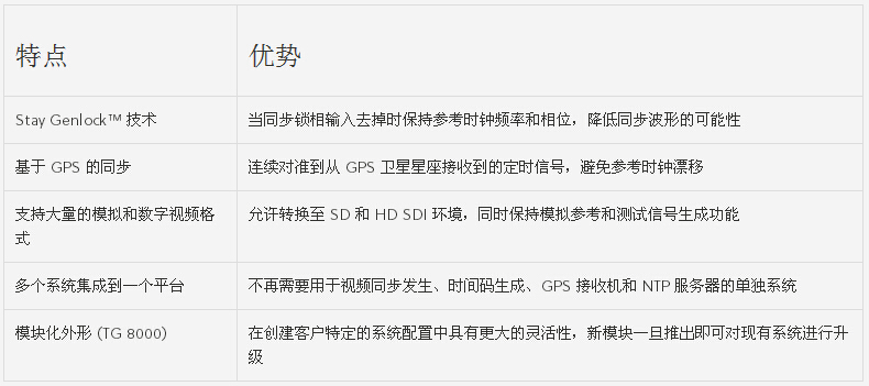 - 主控同步/主控時鐘參考發(fā)生器 泰克視頻同步發(fā)生器提供設施參考信號,保證穩(wěn)定的設施定時源。泰克信號發(fā)生器提供設備驗證和校準應用所需的測試信號,支持眾多模擬和數(shù)字格式以方便您的技術轉換。 支持 3 Gb/s SDI 和雙鏈路 SDI 格式,幫助部署新興的視頻技術。Stay Genlock? 提供獨特而強健的同步鎖相模式,保證數(shù)字廣播設施的穩(wěn)定信號同步。GPS 同步和時間碼模塊帶有集成 GPS 接收器,提供長期的參考時鐘穩(wěn)定性。同時還包含當天時間和節(jié)目時間碼功能。泰克自動切換設備在一個主和備份 SPG 系統(tǒng)內(nèi)提供設施參考信號冗余。